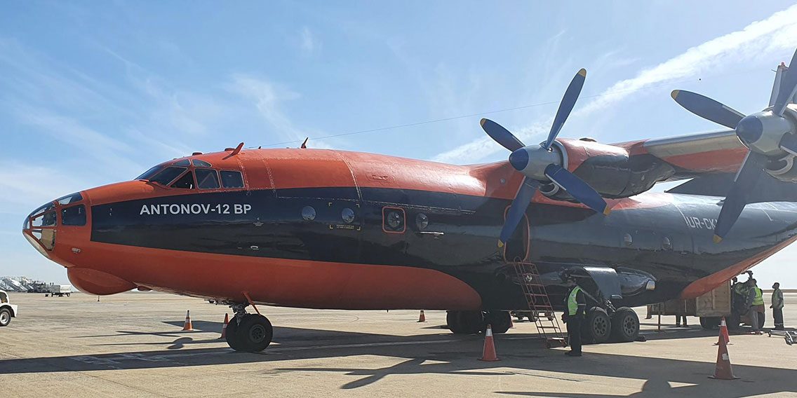 O An-12 tem capacidade para transportar até 20 toneladas de carga e tem 33 metros de comprimento por 38 de envergadura. Além de ser de fabricação ucraniana, o turboélice é operado pela companhia aérea ucraniana Cavok Air.