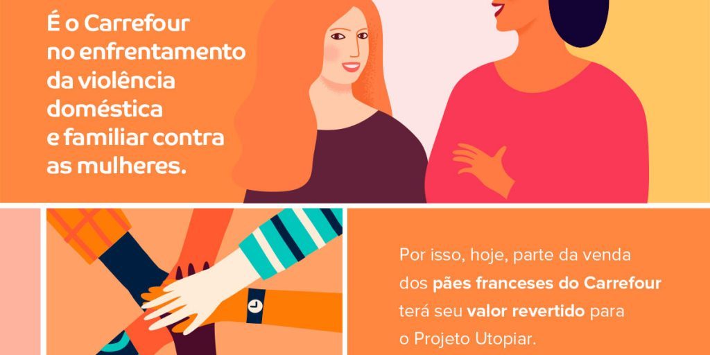 São Paulo, março de 2021 – No dia 8 de março, Dia Internacional da Mulher, o Carrefour promoverá uma ação especial para apoiar o combate à violência contra a mulher. Na data, parte da renda obtida com a venda de pães franceses, tradicionalmente vendidos pelas Padarias da rede, será doada à Utopiar, organização sem fins lucrativos que trabalha no desenvolvimento de produtos em parceria com mulheres que estão superando situações envolvendo esse tipo de violência.