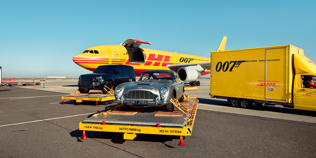 Transporte especial Recentemente, a DHL transportou com segurança ( e em operação carbono zero) oito veículos originais que foram usados no filme e que são a atração principal de uma exposição no Museu Automotivo Petersen. Os veículos saíram de Norwich, no Reino Unido, e foram até Los Angeles, nos Estados Unidos. Entre os modelos, estão cinco Aston Martins, duas BMWs e um Lotus Esprit S1, conhecido pelos fãs como Wet Nellie em sua aparição no filme de 1977, 007 –