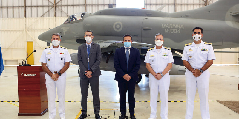 Gavião Peixoto – SP, abril de 2022 – A Embraer realizou hoje a entrega do último caça modernizado AF-1 (AF-1B) à Marinha do Brasil. A cerimônia foi realizada na unidade industrial da Embraer em Gavião Peixoto, no interior paulista. No total, dentro do programa AF-1 (designação da Marinha para o McDonnell Douglas A-4 Skyhawk) foram modernizados sete caças subsônicos – cinco AF-1B monoposto e dois AF-1C biposto.