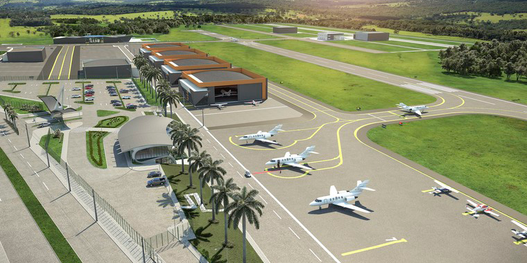 A obra Ao todo, a construção do empreendimento será dividida em cinco fases, sendo a primeira com previsão de entrega para 2024. A primeira fase está prevista para ser concluída em 2024, com 72 lotes entregues, pista de pouso funcionando, além de área de embarque e desembarque e toda a infraestrutura necessária para os hangares, como energia elétrica, sistema de abastecimento de água, pavimentação asfáltica e toda a área fechada com portaria monitorada.