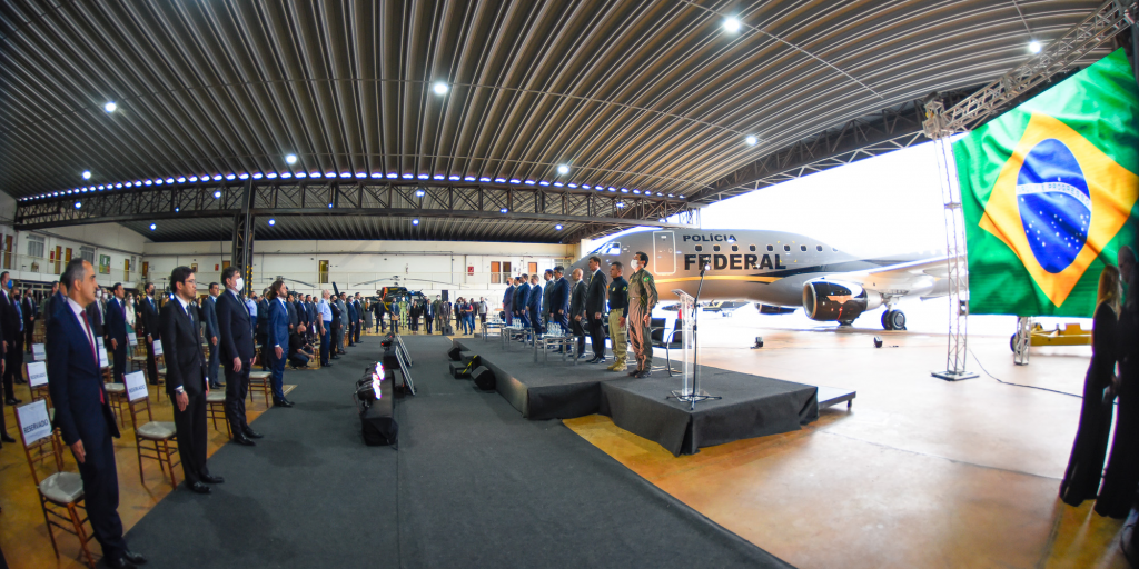 Brasília, DF, dezembro de 2021 – Em cerimônia realizada hoje no hangar da Coordenação de Aviação (CAV), em Brasília, a Polícia Federal celebrou a chegada do primeiro de dois jatos E175, que começará a operar em breve no país. O segundo jato do modelo E175 deverá ser entregue à Polícia Federal em 2022.