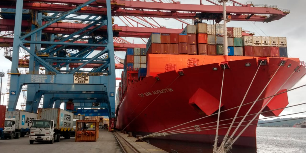 São Paulo, junho de 2021 – A Santos Brasil, empresa referência em operações logísticas e portuárias, atingiu na última semana uma marca histórica no Tecon Santos. O recorde aconteceu na operação do navio Cap. San Augustin, do armador MSK, com inéditos 5.452 contêineres movimentados. Esta quantidade de unidades movimentadas em uma mesma embarcação foi executada em 44 horas, atingindo um MPH (movimentos por hora de embarque e desembarque de cargas nas embarcações) de 124,36. Para se ter uma ideia, o maior número de contêineres movimentados no terminal santista administrado pela Companhia até então foi de 5.093, em novembro de 2013.