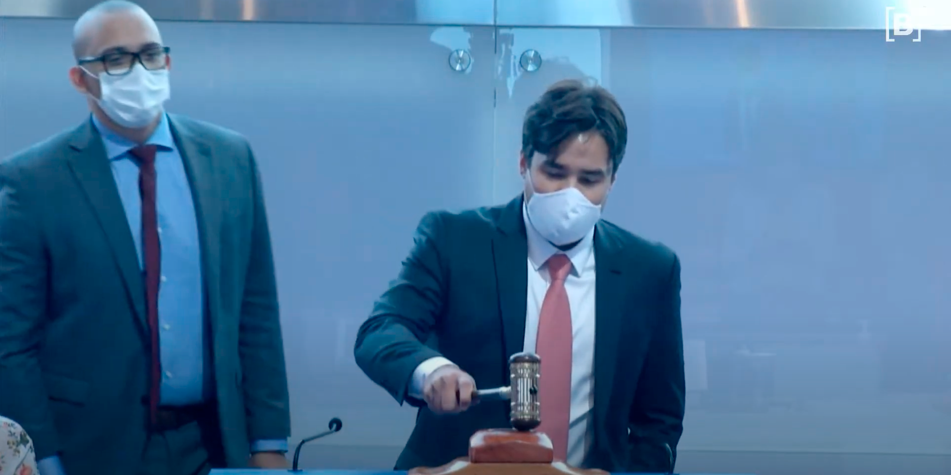 Daniel Pedreira Dorea, diretor financeiro e de relação com investidores da Santos Brasil, bate o martelo após leilão na B3